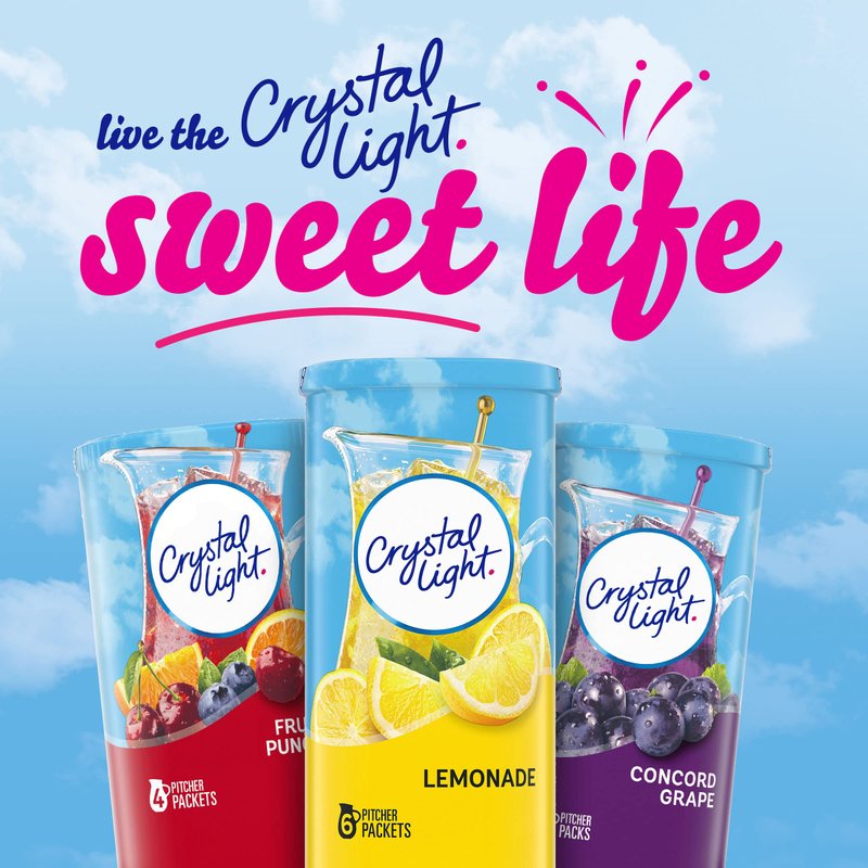 - CRYSTAL LIGHT: One 6 ct canister of Crystal Light Naturally Flavored Lemonade Powdered Drink Mix