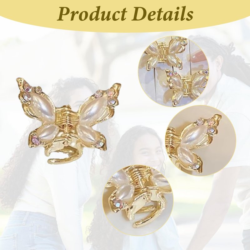 Crystal Rhinestone Mini Hair Clips for Girls - 4Pcs Gold Butterfly Hair Claw Clips Y2K Pearl Cute Small Alligator Claw Clips Duck Bill Hair Barrettes Hair Accessories for Women Girls Teens Gifts