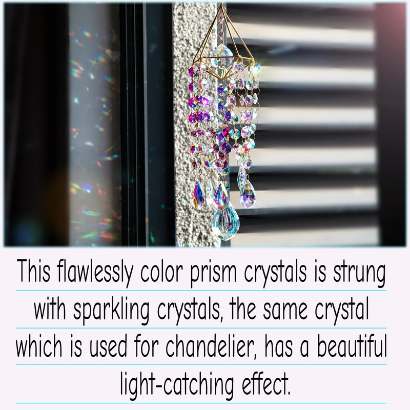 - 🌈Sparkling: This flawlessly color prism crystals is strung with sparkling crystals, the same crystal which is used for chandelier, has a beautiful light-catching effect.