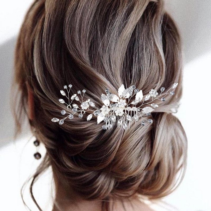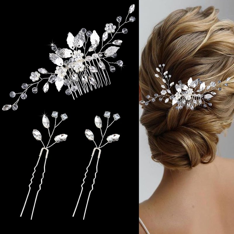 Crystal Wedding Hair Accessories - Hair Comb with Rhinestone Hair Pins and Pearls for Bride, Bridesmaids, Flower Girls (Silver)