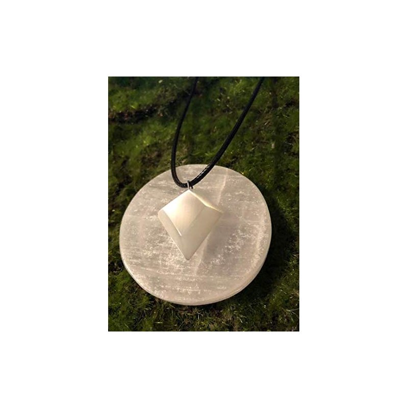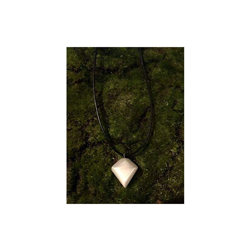 Diamond shaped selenite necklace with cord ** Every gemstone piece has unique characteristics. The picture on this listing is a stock photo. The piece you will receive will be similar to this picture. If you would like a picture of the exact piece you will receive, please leave a note at checkout and I will be happy to send you one prior to shipping. All gemstones have certain properties, here's what the ones in this item have: Selenite: Selenite is a stone of mental clarity. This clarity enhances mental flexibility and enables strong decision making abilities. It can affect every day life and give you full mental clarity to lesson confusion and mental disorientation. Selenite is also a stone of truth and honesty. This promotes good business practices as well as honesty in other types of relationships. Not for children under 5 - Do not apply moisture to selenite
