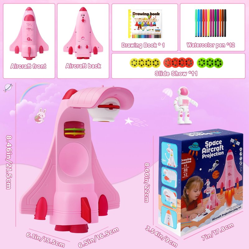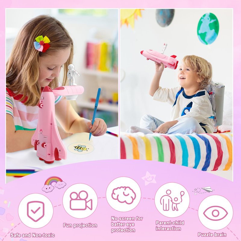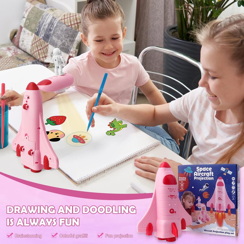 CS COSDDI Drawing Projector for Kids, Projection Drawing Board Kids,Space Shuttle Drawing Projector for Kids with Rocket Ship Toys for Kids,Kids Drawing Projector with 66 Patterns