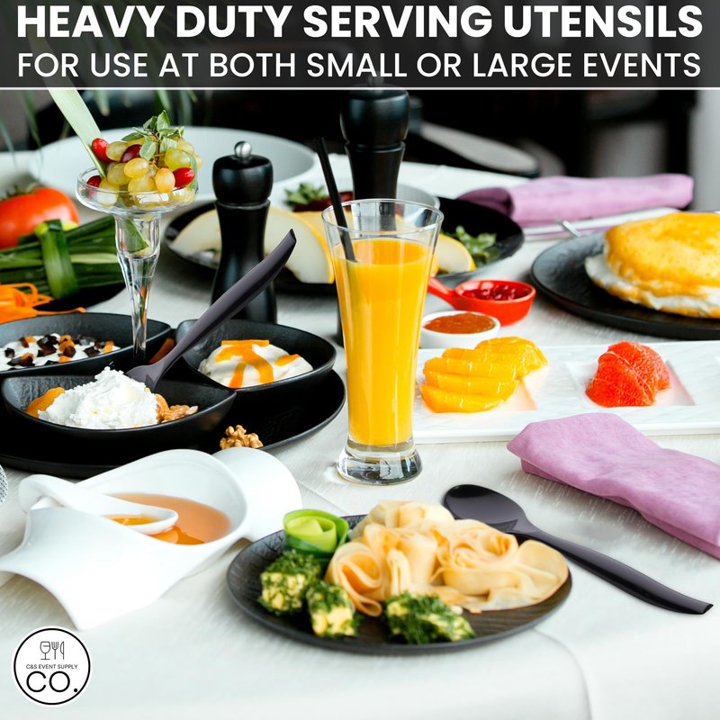 C&S Event Supply Co. 10" Plastic Serving Utensils, Disposable Plastic Serving Spoons, Reusable, Disposable, For Weddings, Catering, Buffets, Parties and Events, Bulk 12 Pack - Black