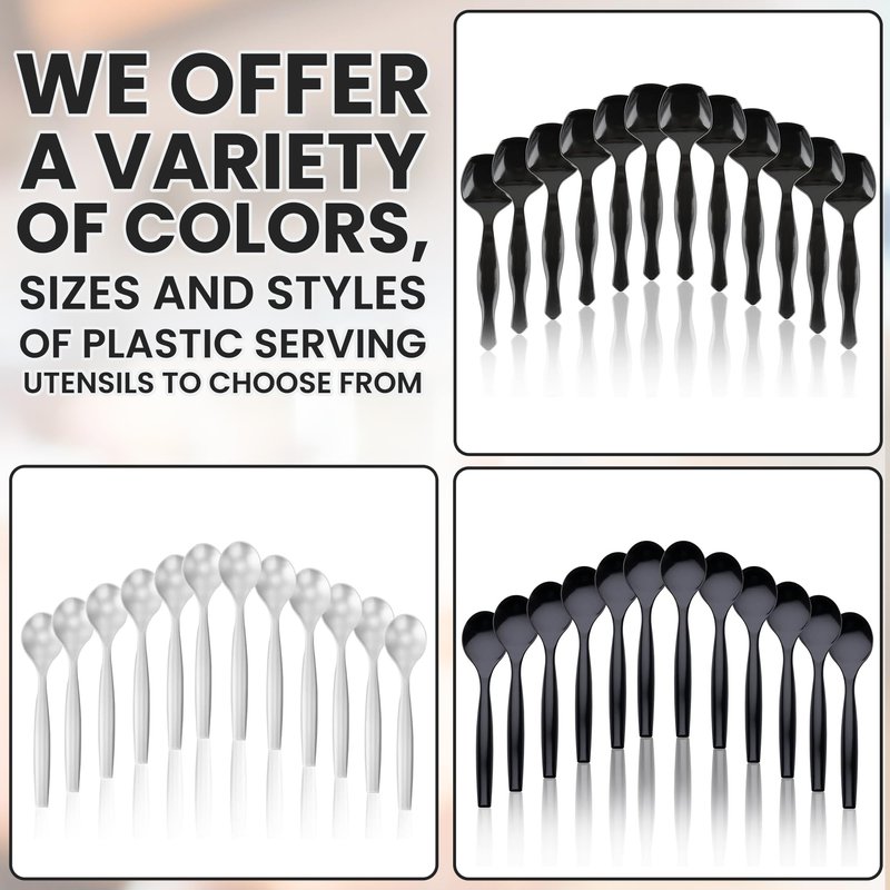 - Perfect Length: This 12, 36 or 72 pack (depending what quantity you choose) of party serving utensils spoons bulk in 10" length provides a way to effortlessly reach the bottom of large bowls or food pans. These bulk plastic silverware make serving easier while ensuring guests can enjoy every last morsel of your signature dishes.