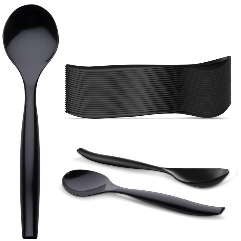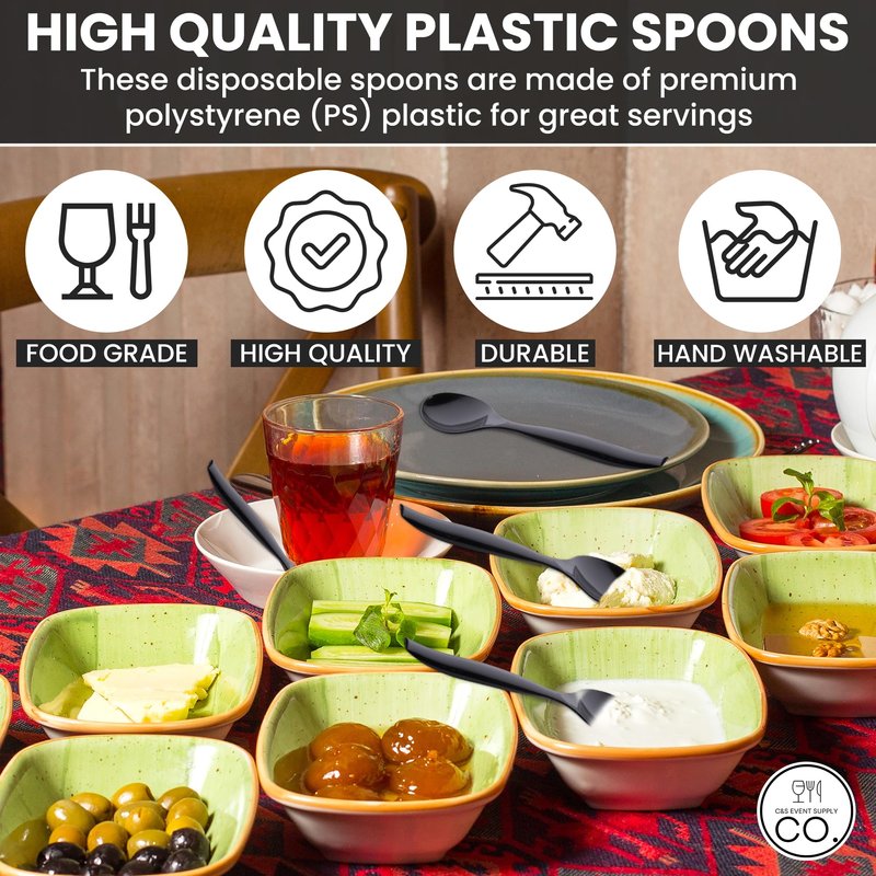 - Heavy-Duty Serving Utensils: These Black disposable spoons are made of premium heavy-weight plastic for great servings. Disposable cutlery set, sturdy, polystyrene construction prevents breakage while in use, and its disposable design promotes fast and efficient clean-up at the end of your event.