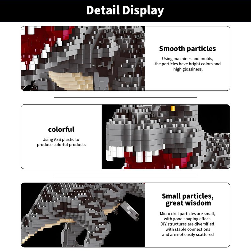 - Combining education with entertainment and stimulating creativity: This building block model is not just a toy, but also an excellent tool for cultivating children's imagination and creativity. By building it themselves, children can gain a deeper understanding of the skeletal structure and body characteristics of the Tyrannosaurus rex, while also developing spatial thinking skills, hand eye coordination, and problem-solving abilities, making learning lively and interesting.
