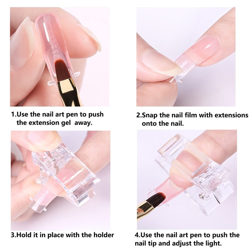 - Quality Material-the nail tip clip is made of quality polyvinyl plastic, designed according to your fingers, so there is enough space and it will not hurt your fingers;Acrylic nail clippers are made of metal and have a strong spring inside for durability.They all contribute to quickly building poly false nails.