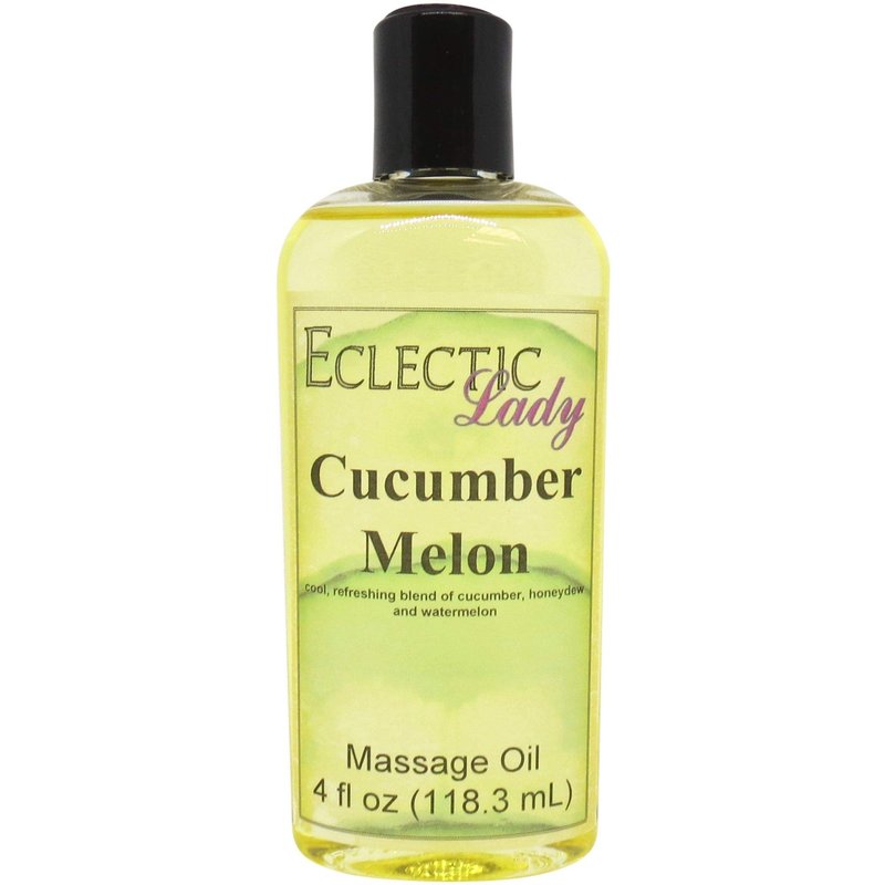 Cucumber Melon Massage Oil, 4 oz, With Sweet Almond Oil and Jojoba Oil, Preservative Free, Perfect for Aromatherapy and Relaxation