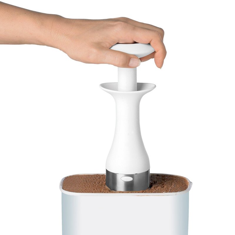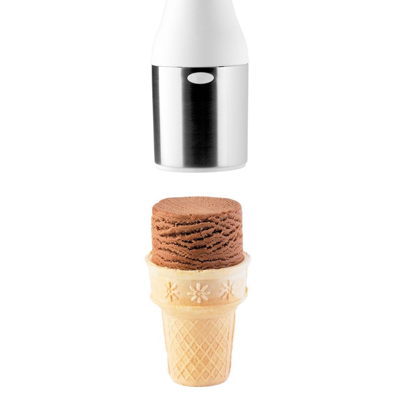 - Ergonomic scooper cuts through the hardest ice cream with a simple twist- and- lift action