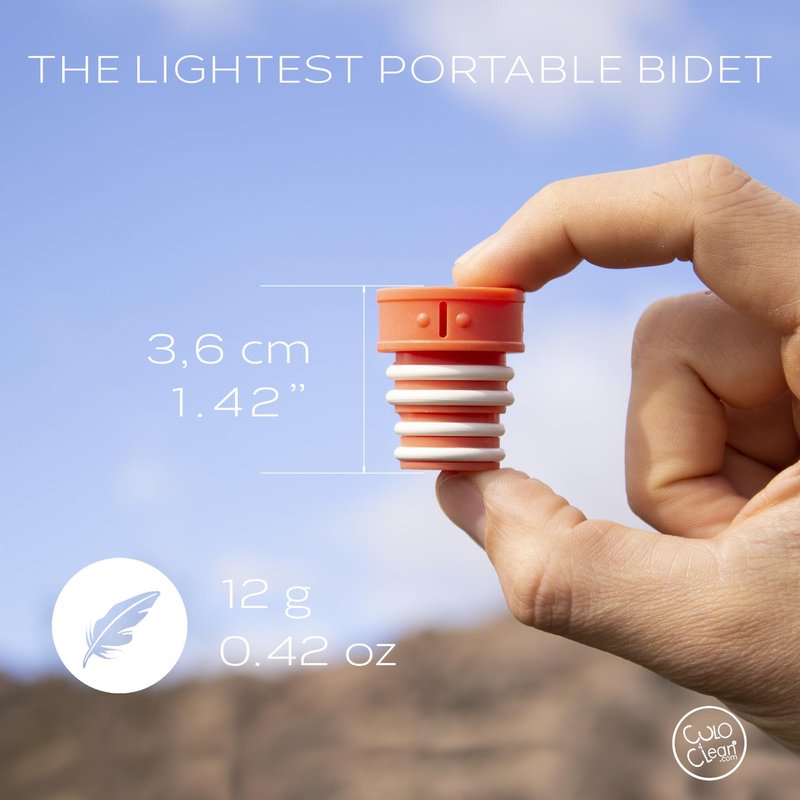 THE LIGHTEST TRAVEL BIDET ON THE MARKET. CuloClean is the smallest, lightest, and most discreet portable bidet on the market. A handheld bidet compatible with any plastic bottle. Only 0'42 oz! Perfect for hikers.