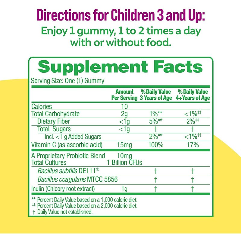 - PROVEN PROBIOTIC STRAINS Formulated with a unique blend of probiotics and prebiotic veggie fiber, these naturally flavored gummies work to harness the power of your kid’s gastrointestinal microbiome.