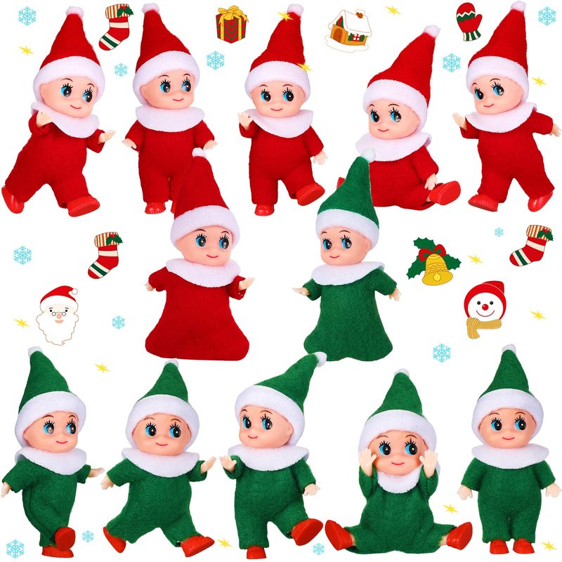 Cunno 12pcs Christmas Baby Elves Miniature Elf Doll Plush with Elf Clothes Xmas Elf Toy Accessories for Little Girls and Boys Christmas Advent Calendar Easter Decorations(Red, Green)
