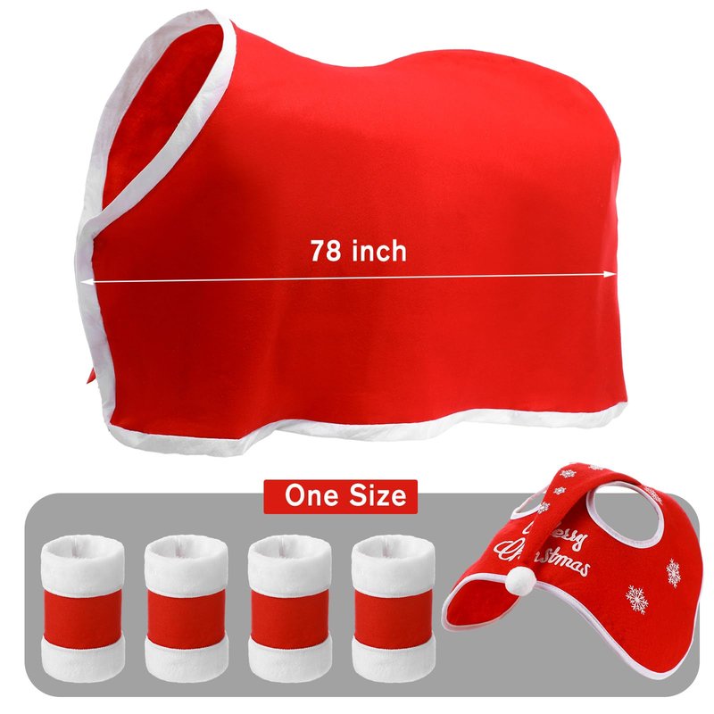 Cunno 6 Pack Horse Christmas Costume Include Slip on Horse Halter Cover with Fleece Trim with 4 Pcs Horse Leg Wraps and Horse Saddle Blanket Santa Hat for Horse Winter Xmas Holiday Party Accessories