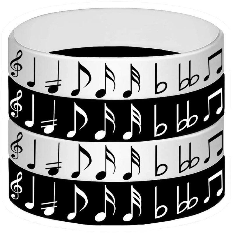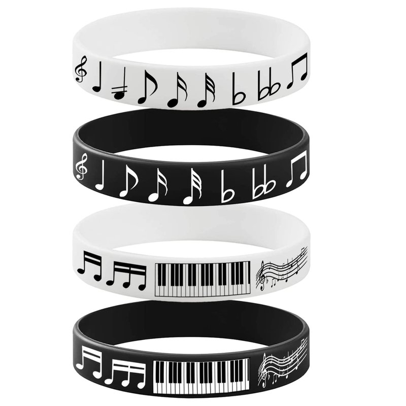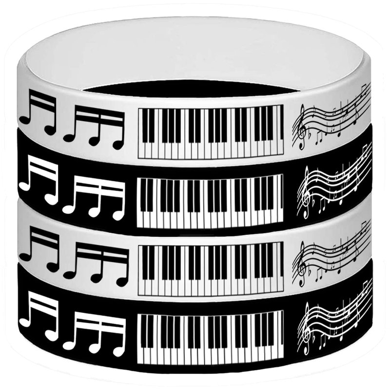 - Piano Notes Silicone Bracelets Set: 48 pieces piano note themed rubber bracelets in 2 different colors, black and white.