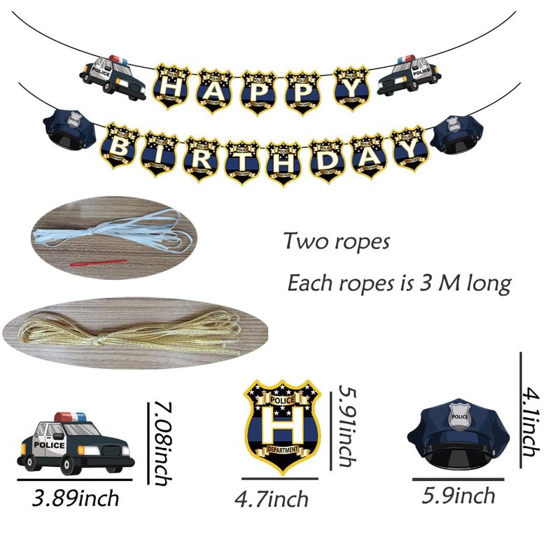 - Package Including:2 Police happy birthday banner with police car and police cap,it's can be used above the table, on the wall or on the fireplace, etc.