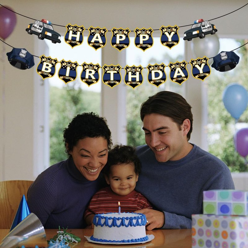 CupaPlay Police Happy Birthday Banner Party Decorations-Police Halloween Party Favors and Supplies Baby Shower/Birthday Wedding Home Decoration