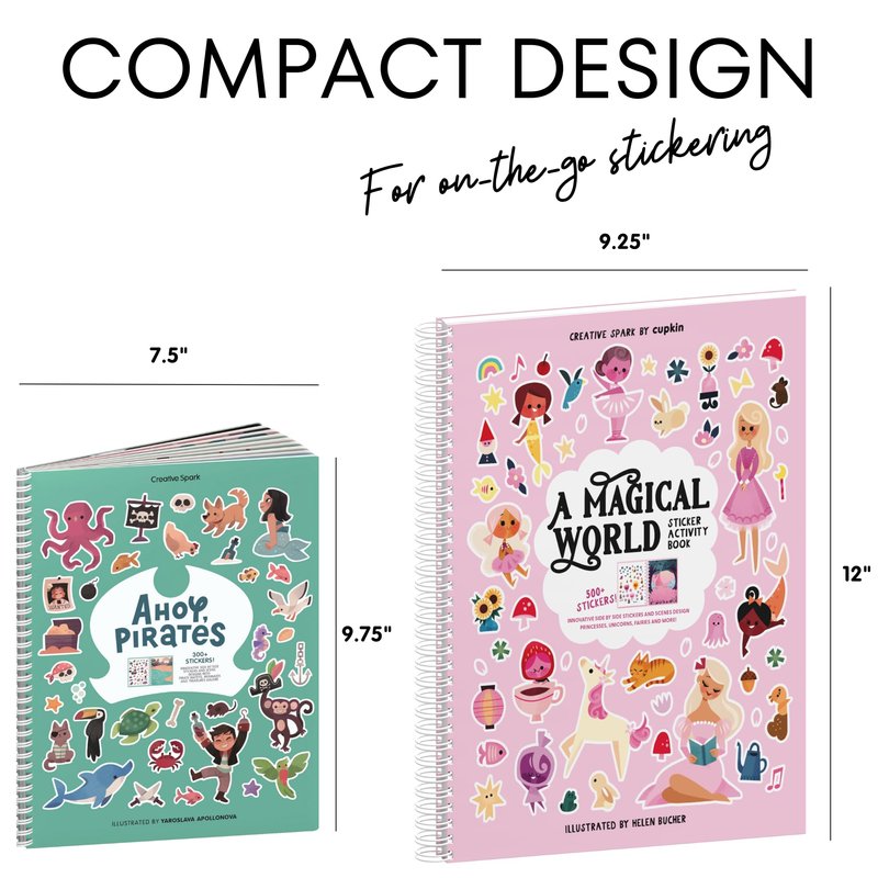 - The original lay-flat sticker book: We created the side-by-side sticker pages & scenes with tiny hands in mind. The spiral binding allows for more time creating and less time flipping back and forth. Your kids will stay busy for hours crafting different scenes with these easy-to-peel stickers. Our spiral-bound sticker and coloring activity books are perfect for ages 2-4 and beyond!