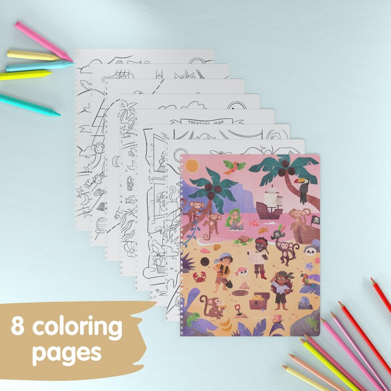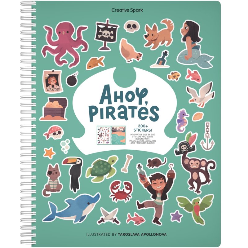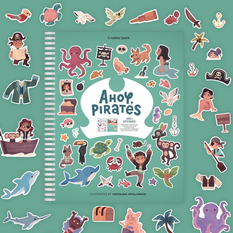 - What's included: Our Ahoy, Pirates Sticker Book contains 300+ stickers to place on 8 unique scenes, and 8 coloring book pages all hand-drawn by independent artists! Perfect for kids 3-5, this Pirate sticker book includes scenes and critters from across a sea of adventure including sharks in the ocean, pirates on ships, treasure chests on the beach, and many more!