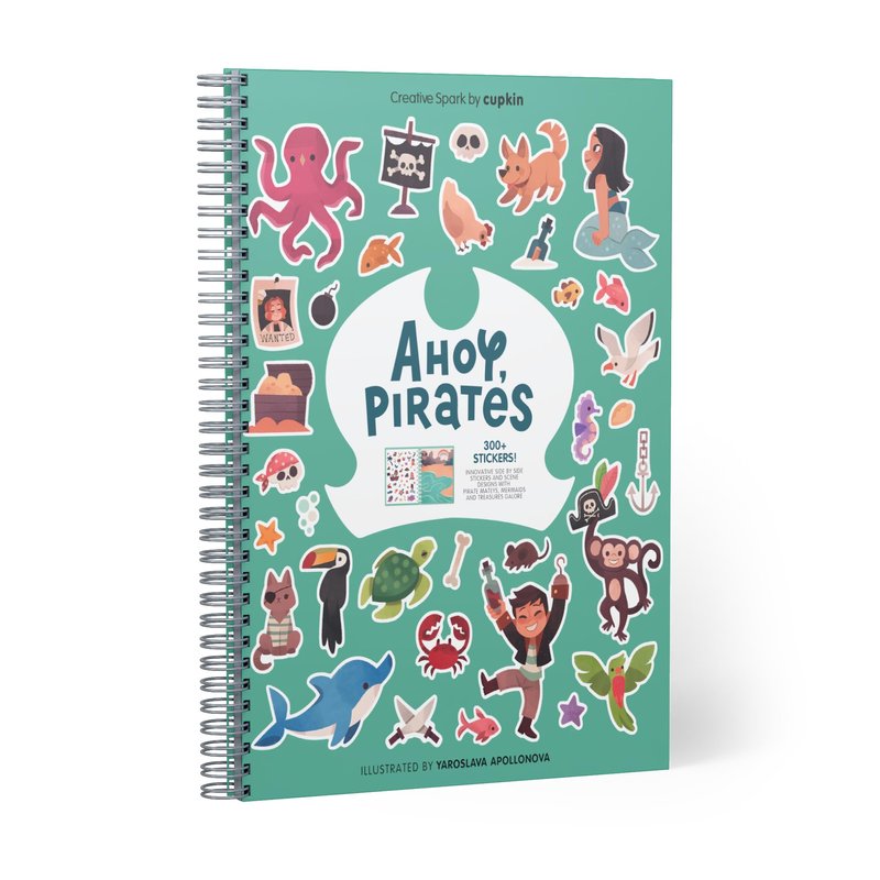 Cupkin Pirate Sticker Book Activity for Kids, Toddler Airplane Travel Essentials, 300+ Pirate Stickers for Kids + 8 Scenes + 8 Coloring Book Pages, Gift for Boys and Girls, Small Sticker Book