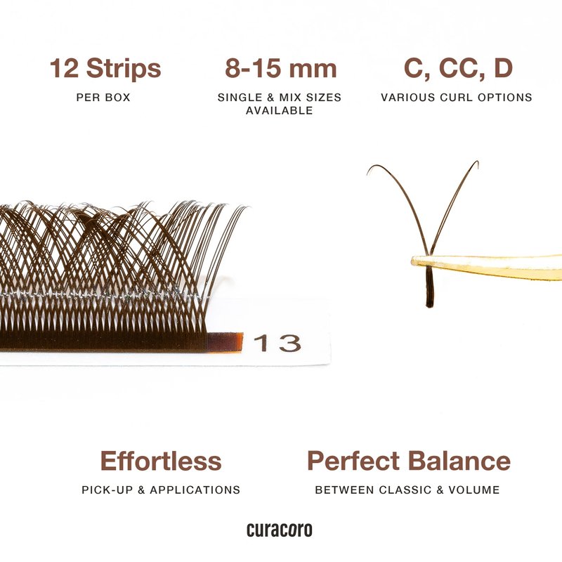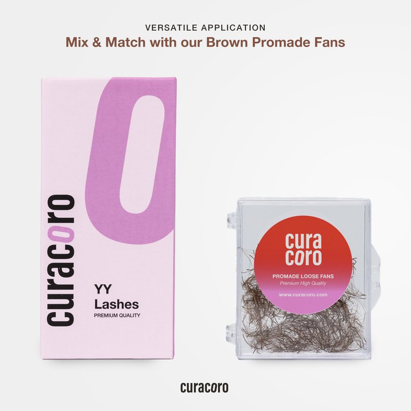 Curacoro Brown YY Lash Extensions - 2D Fans Volume Eyelashes, C CC D Curl, Thickness 0.07mm, 8-15mm Length Mixed Tray, Full Fluffy Volume Look, Long Lasting & Easy Application