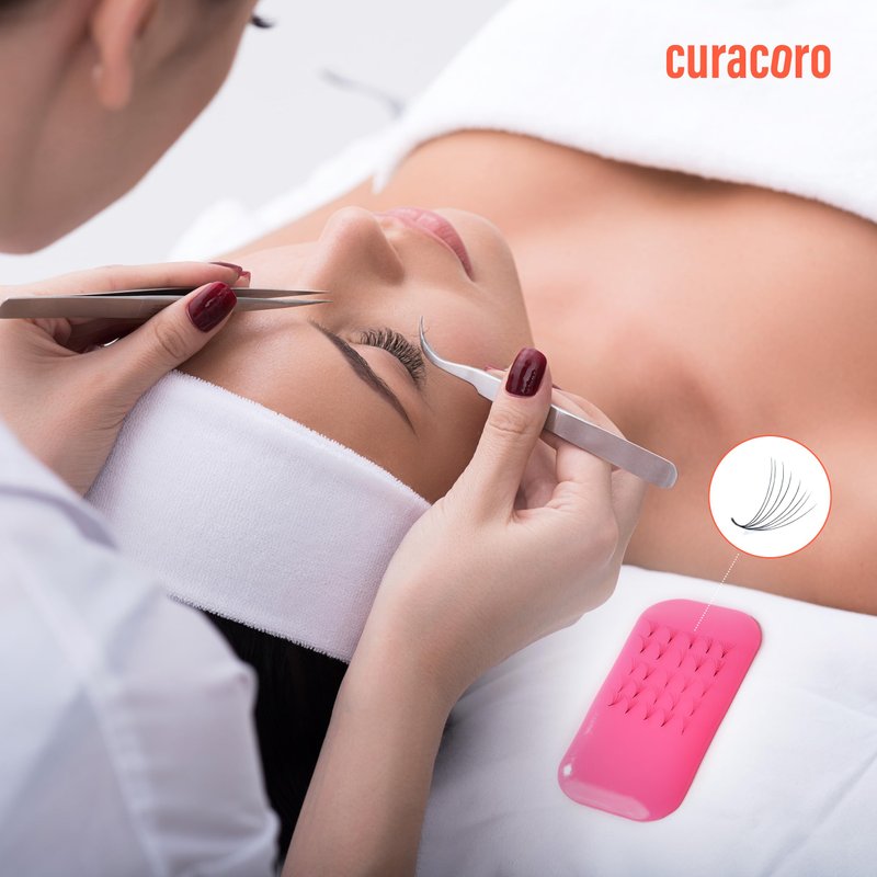 - Versatile Application — Curacoro's silicone eyelash holder pads are ingeniously designed with a curved shape to facilitate seamless eyelash extension applications. Simply remove the protective film from each side and secure the pads to your forehead or hand, simplifying the grafting process and enhancing efficiency for lash professionals.