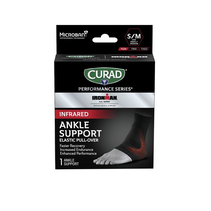 CURAD Performance Series IRONMAN Infrared Ankle Support, Elastic, Targeted Compression for Enhanced Joint and Tendonitis Recovery & Performance, Powered by CELLIANT Technology, Small/Medium