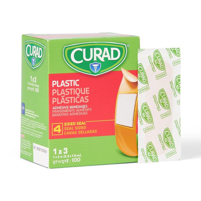 CURAD Plastic Adhesive Bandages 1" x 3", Not Made from Natural Rubber Latex, Box of 100