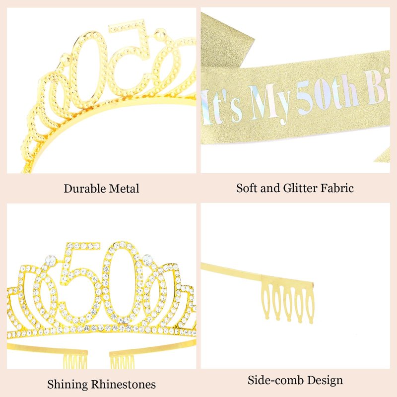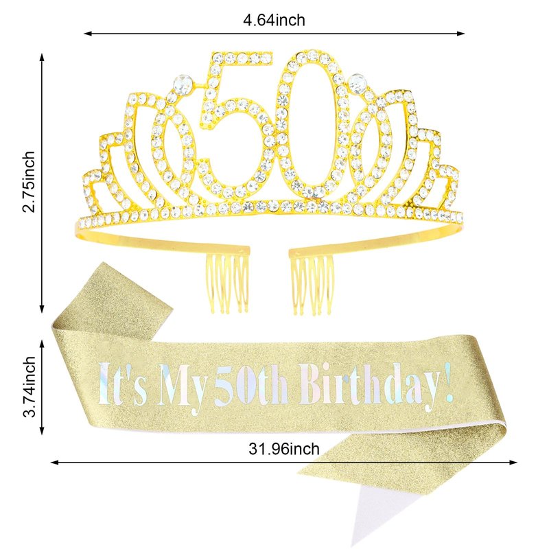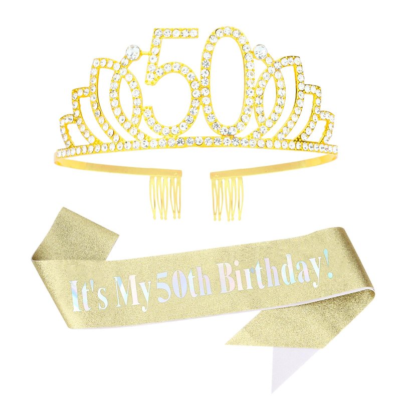 - BEAUTIFUL & ELEGANT: Gold Crystal Princess Crown and 50th Sash will make you the center of attention on your special day. It’s the perfect finishing touch for your birthday look and make you more glamorous. Enjoy the compliments it will bring you at the party