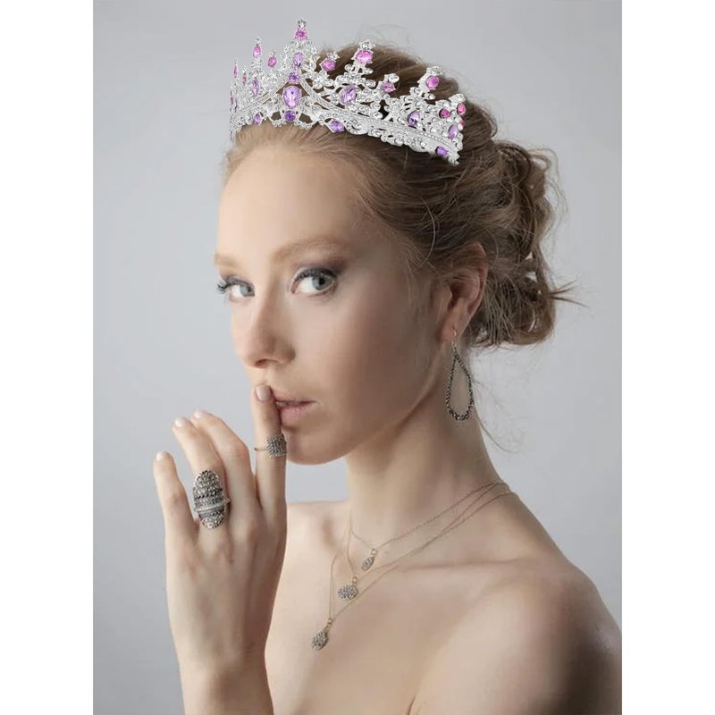 CURASA Purple Tiaras for Women Silver Princess Crown Birthday Tiara for Little Girls Quinceanera Crown Queen Crowns Wedding Tiaras for Bride Tiaras and Crowns for Women Valentine Bridal Pageant