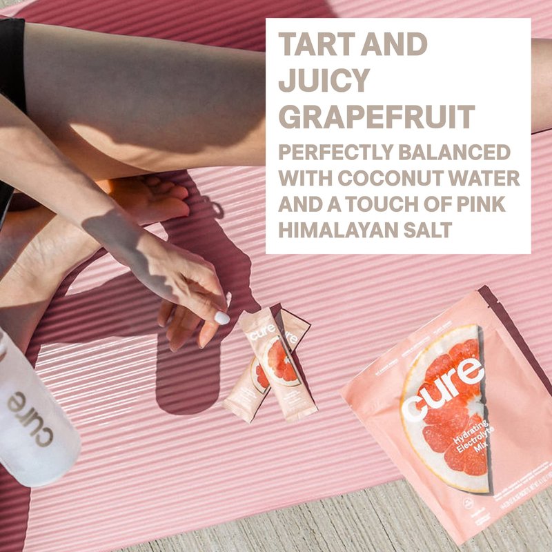 Cure Hydrating Plant Based Electrolyte Mix | Powder for Dehydration Relief | Made with Coconut Water | No Added Sugar | FSA & HSA | Vegan | Paleo Friendly | Pouch of 14 Packets - Grapefruit