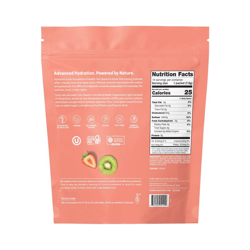 Cure Hydration | Plant-Based Electrolyte Drink Mix | No Added Sugar | FSA & HSA | Dehydration Relief Powder Made with Coconut Water | Non-GMO | Vegan | Pouch of 14 Packets - Strawberry Kiwi