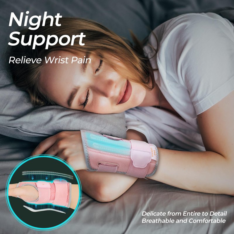 - Superior Fabric for Optimal Care During Day & Night - Our wrist support brace is expertly crafted using top-quality materials, delivering unparalleled comfort and care. The ultra-soft fabric minimizes friction, with its breathable design, you can confidently wear it all day long, ensuring a dry and comfortable wrist. Daytime brings stable wrist support, enabling effortless engagement in activities, while nighttime promotes recovery and alleviation of wrist fatigue for a blissfully sleep.