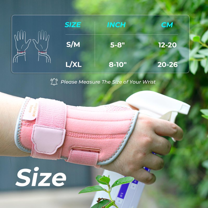 CURECARE 2 in 1 Wrist Brace for Carpal Tunnel, Wrist Splint with 2 Replaceable Matel Plates & Springs and 360° Adjustable Straps (Right - Pink, L/XL)