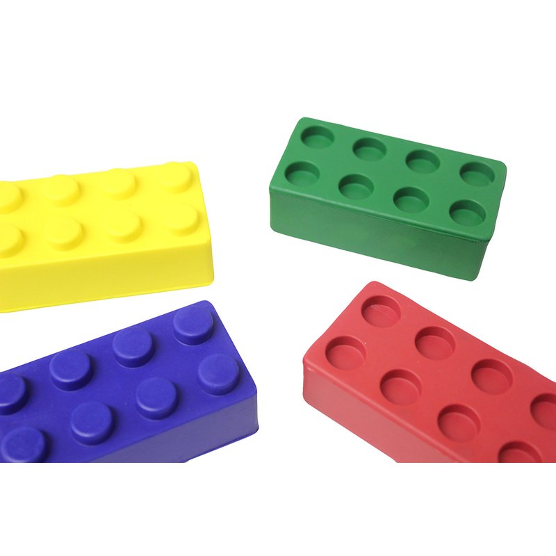 SET OF 4 These building bricks are actually stress balls! They are made from the dense foam like you would expect to have a stress ball made from, the best part is they are completely functional as blocks and you can build with them! Size - 3" x 1.5" x 1.25"