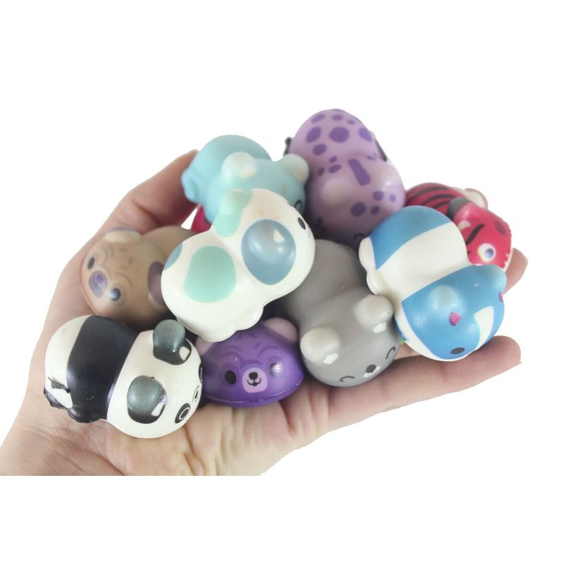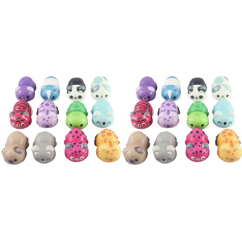 - Includes SET OF 24 TOYS (2 DOZEN) - These adorable animal and food themed toys are made from the cool memory foam slow rise squishy material. This set of micro squishies has several different animal styles, that come in 5 colors each. RANDOM SELECTION.