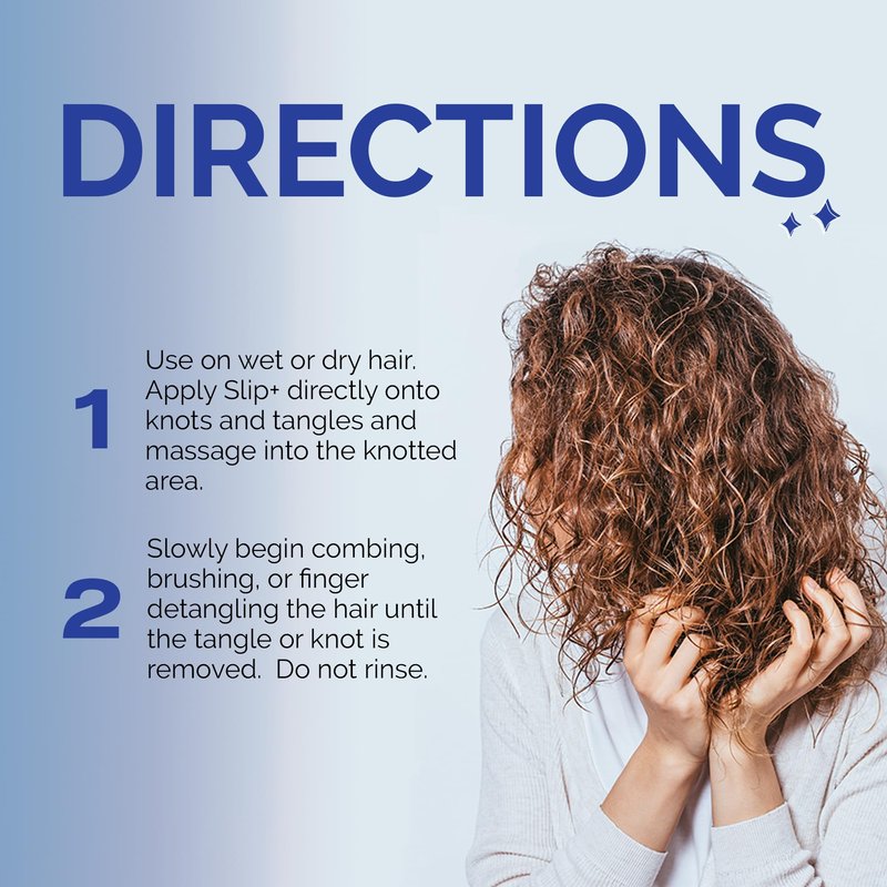 - Directions: Use on wet or dry hair. Apply Slip+ directly onto knots and tangles and massage into the knotted area so it's fully saturated. Slowly begin combing, brushing, or finger detangling the hair until the tangle or knot is removed. Do not rinse.