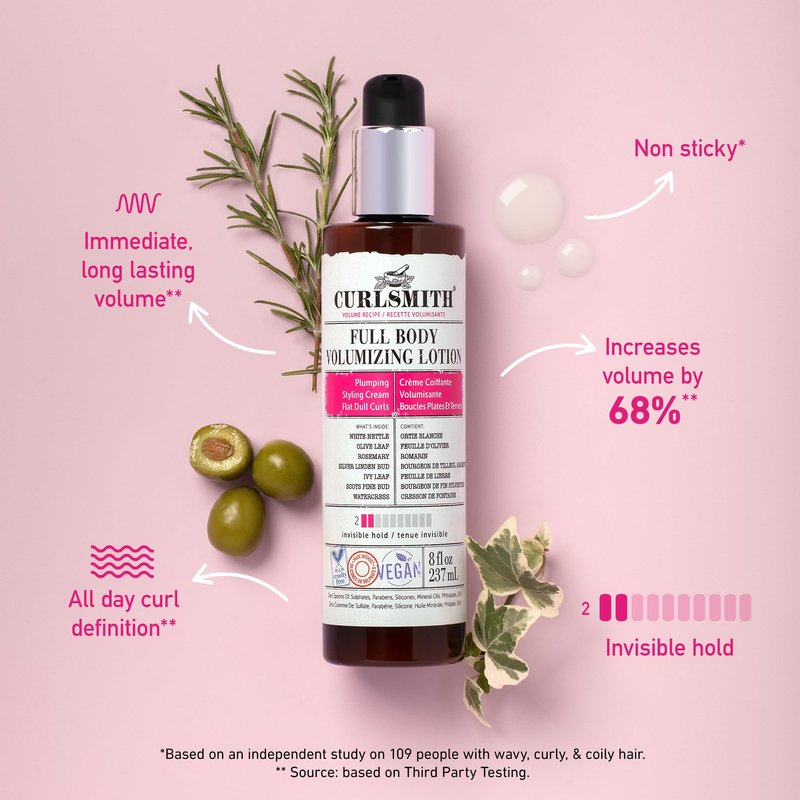 CURLSMITH - Full Body Volumizing Hair Lotion, Curl Definition, Instant Volume and Non-Sticky, for Wavy, Curly or Coily Hair, Vegan (237ml/8fl oz)