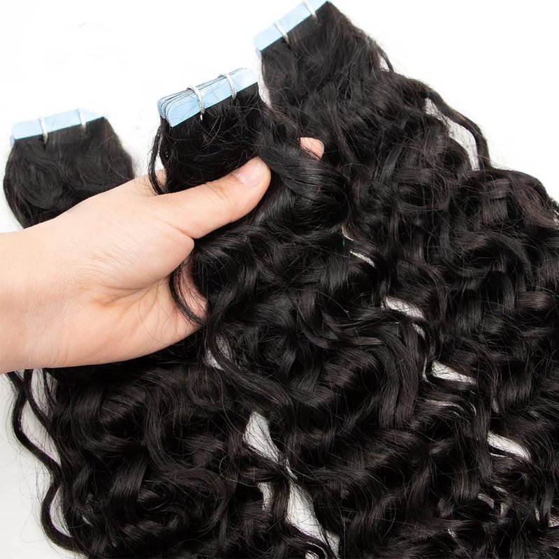 Curly Tape in Hair Extensions Human Hair Double Sided 14 Inch 20pcs 50g Brazilian Remy Hair Water Wave Tape in Hair Extensions Invisible Tape in Real Hair Skin Weft Hair Extensions for Balck Women