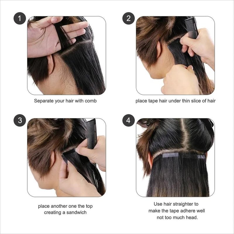- 【Longer Lifetime & Tips】Depends On Good Care——Please Use a Neutral Mild Shampoo,Do Not Let The Conditioner Touch The Tapes Connection,Please Do Not Use Hair Dryers And Let It Dry Naturally. And Please Remember Frequent Styling May Cause Dry Or Split. Use Mild Hair Conditioner Can Prolong The Usage Of Extensions.Using Replacement Tapes Can Extend Hair Lifetime. The Best Way To Make The Tape Stick The Best Is To Wear It With Iron Heat And Avoid Shampooing For 48-72 Hours