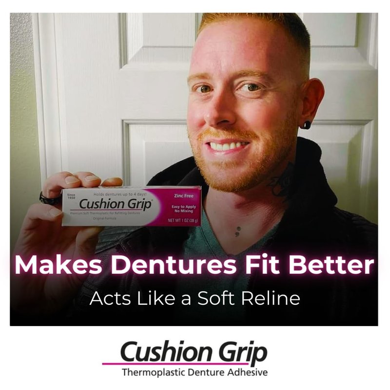 Cushion Grip is great to secure upper and lower dentures, and partials, as it offers a perfect fit and fills in any gaps between your gums and teeth. Retaining the soft reline quality for a longer duration than any other denture adhesive, You'll Definitely Save Money in the Long Run!