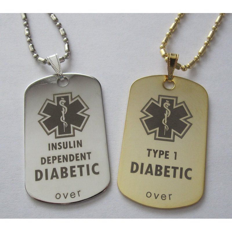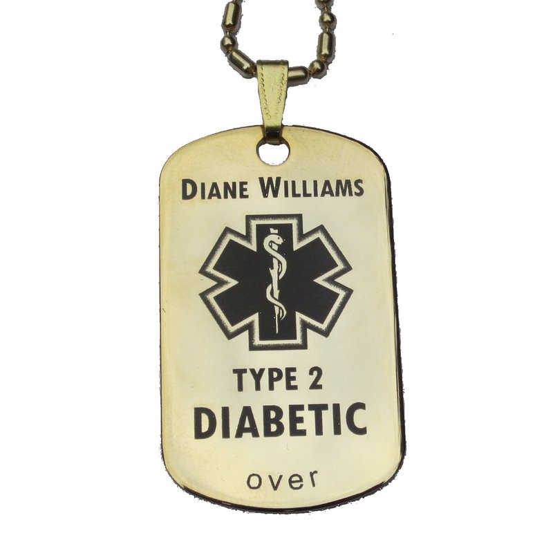 Custom Engraved Diabetes Diabetic Medical Alert Tag Pendant Necklace in Gold or Silver (Gold) - Free Personalization