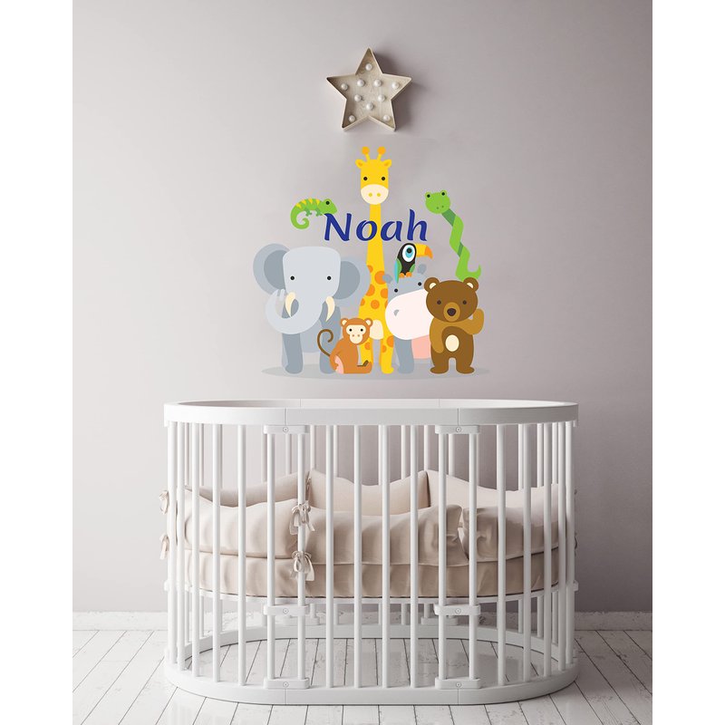 Custom Name Jungle Animals Wall Decal - Baby Safari Zoo Animals Series Theme Wall Art Decal - Wall Decal for Nursery Bedroom playroom Decoration (Wide 20"x20" Height)