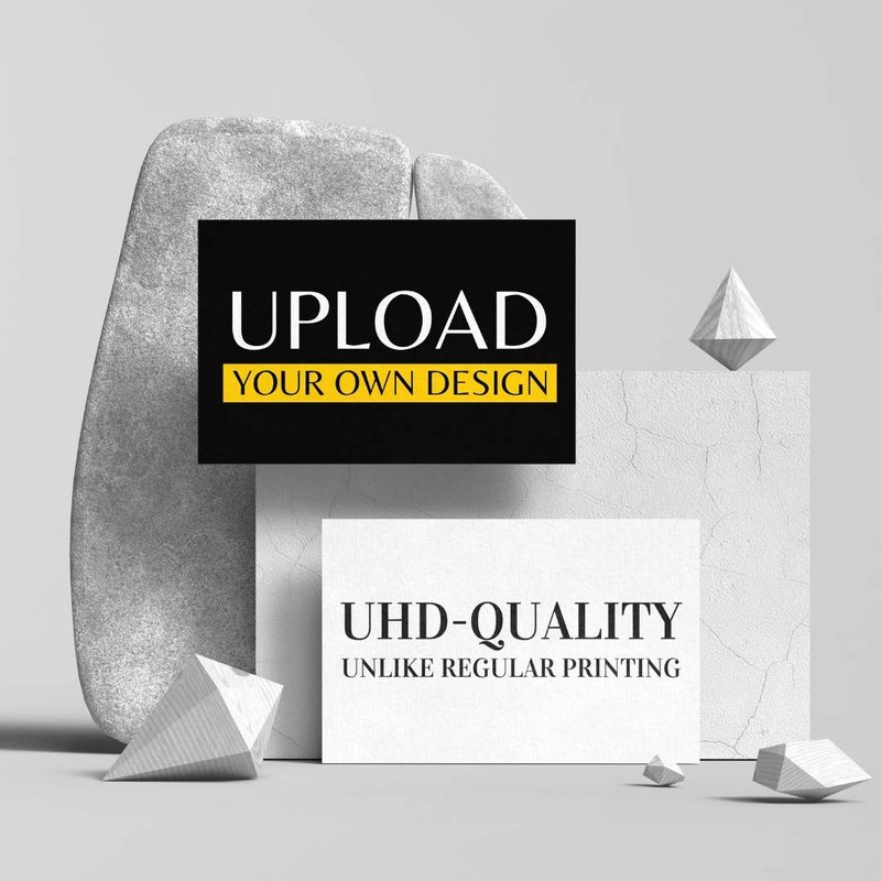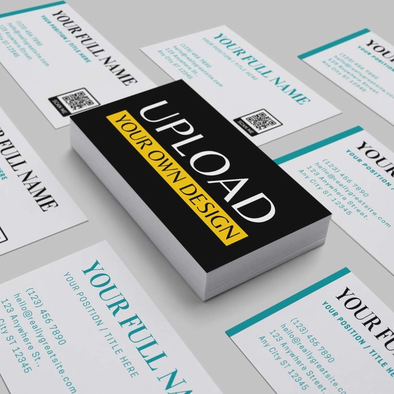 - Custom Business Cards — Upload your own background or designs and customize your business cards with ease. Create your own personalized standard-sized business cards by adding your custom logo or background, write your business name, and add your contact information... Then our printing team will design your card, making it look just like your preview, if not better!