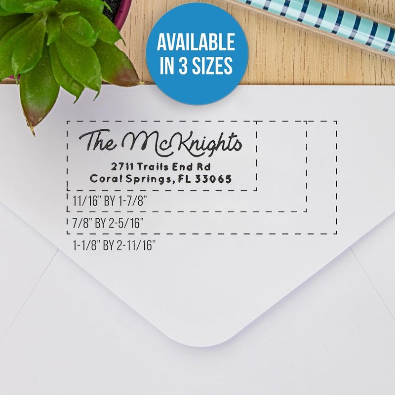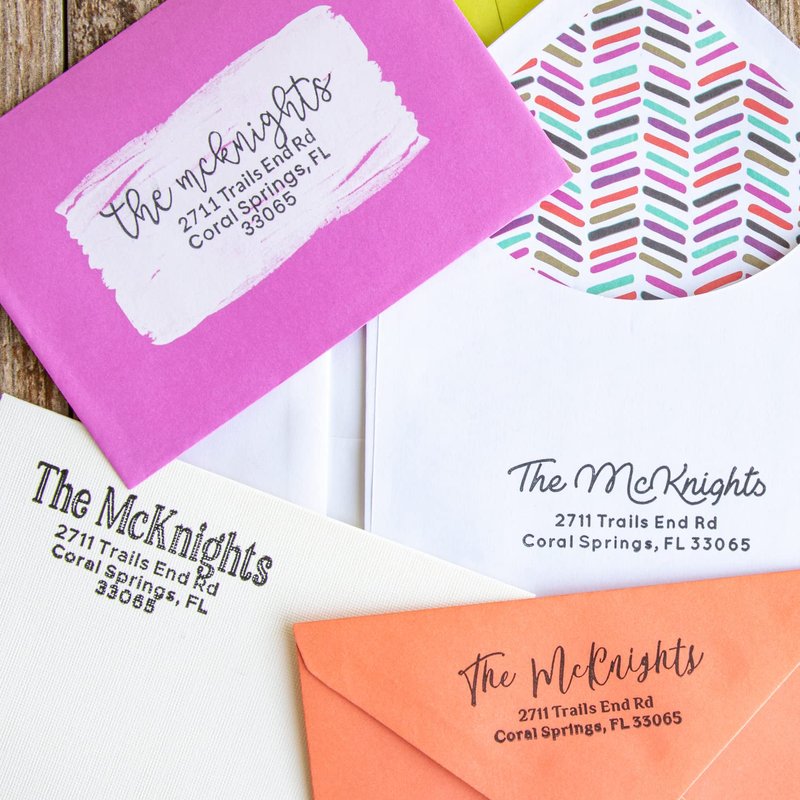 - Self-inking return address stamp customized with your name and address in a variety of designs
