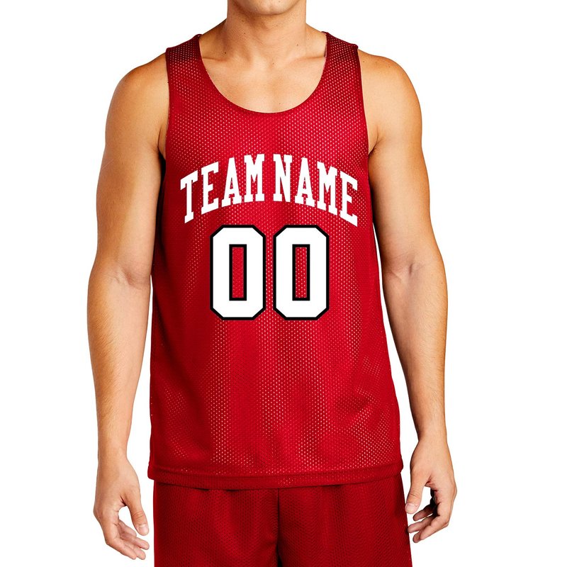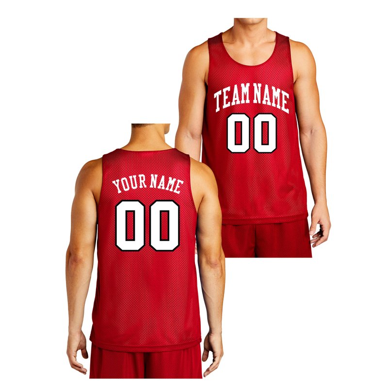 Custom Reversible Basketball Jersey - Front and Back (Adult Medium, Red)