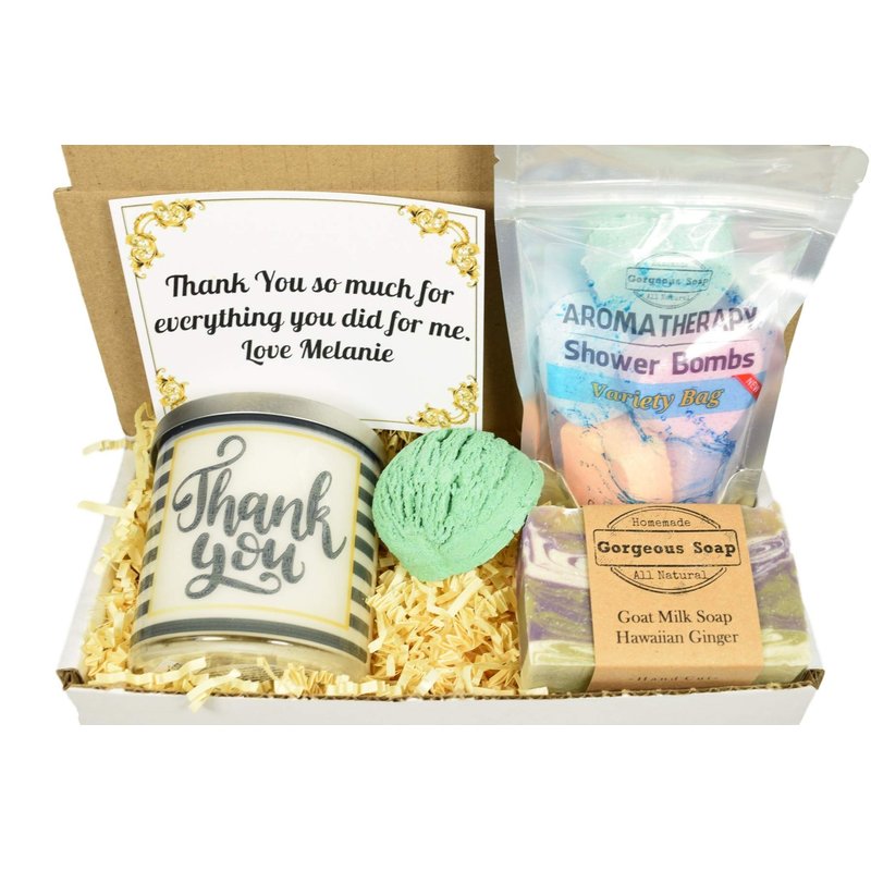 ** Photo is of a Gift Box 11** Welcome to Gorgeous Soap. Here you will find unique, all-natural Thank You gifts for everyone in your life. You can easily send a Thank You Gift to a friend in another state, and it will ship quickly, smell great and make her feel special! Stop sending boring gifts like flowers and fruit baskets!