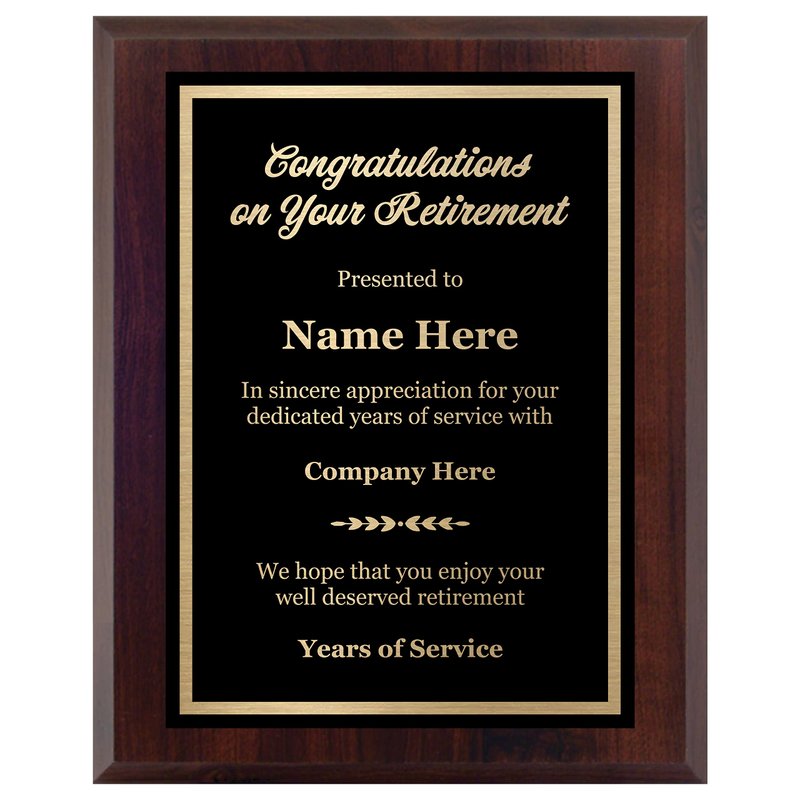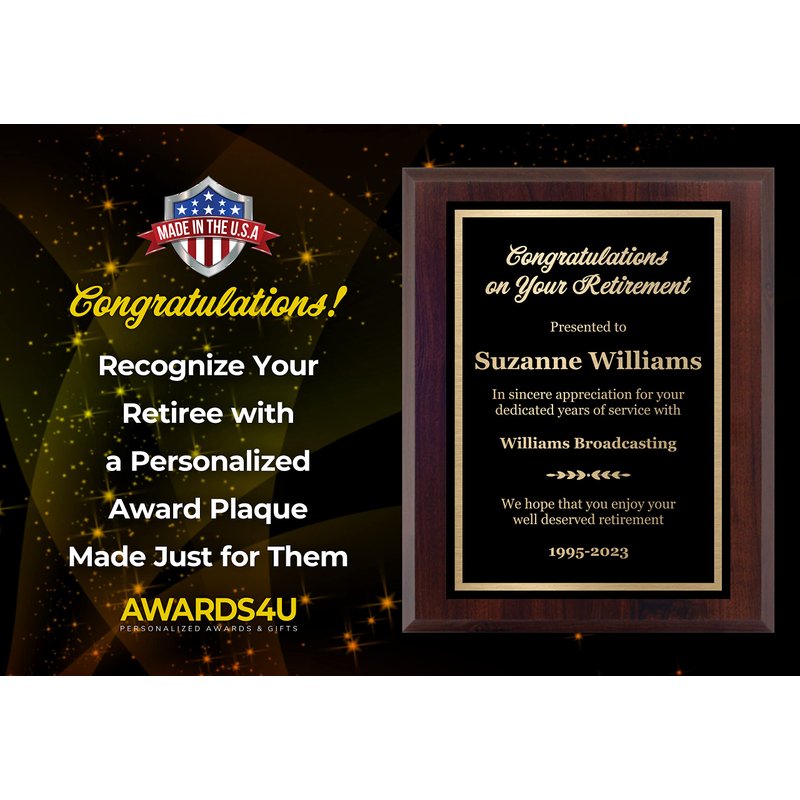 Customized Retirement Plaque Award – Laser Engraved Personalized Gift – Choose Your Size – Customize Now! (9x12)