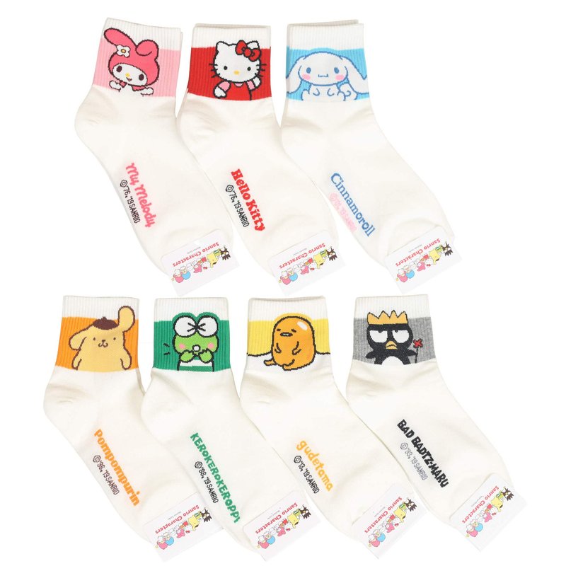 CUSTOMONACO Womens Sanrio Characters Cartoon Novelty Socks (Mascot 7 Pairs)