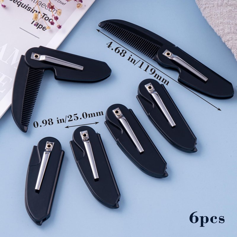 CustomyLife 6pcs Folding Mustache Combs Pocket Beard Comb Fine Teeth Plastic Portable Comb for Men Black Hair Care Styling Grooming