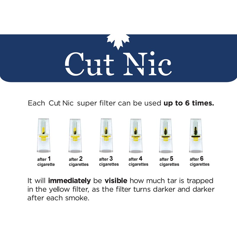 - Cut-Nic Filter absorbs almost 90% of the tar and reduces nicotine